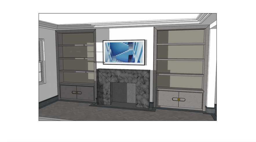 This was an apartment fitout project for a one-bed apartment in Mayfair. We reconfigured the property, replanning the kitchen and dressing areas to maximise space and storage. We added custom joinery to the fireplace and walk-in wardrobe. We designed a bespoke marble and stone bathroom.